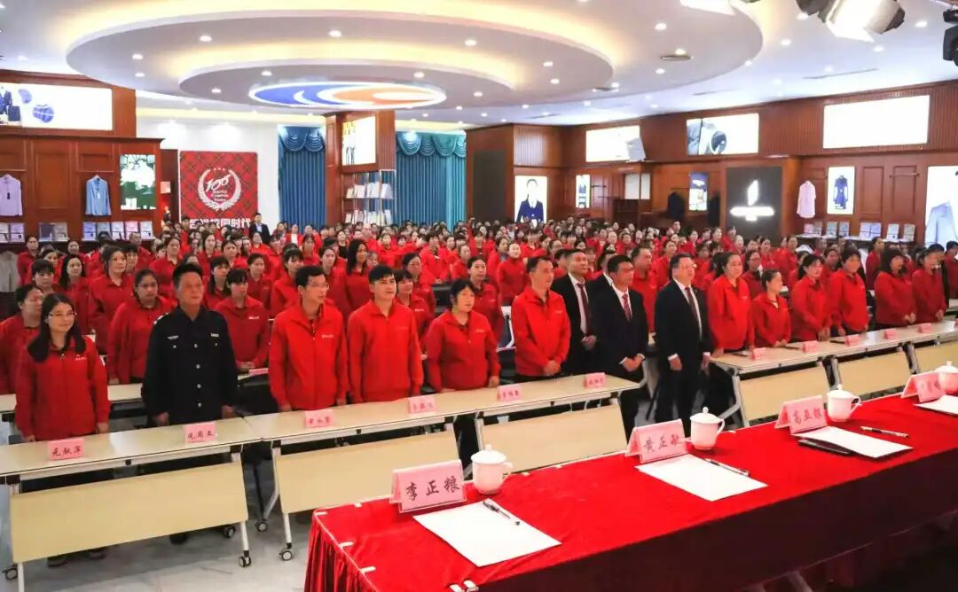 大會伊始,全體參會人員在國歌中起立,拉開序幕。主持人介紹領(lǐng)導(dǎo),感謝員工一年付出,問候領(lǐng)導(dǎo),現(xiàn)場氣氛熱烈。會上,董事長許曲煌致辭指出,2025年是“十四五”收官、集團(tuán)守正創(chuàng)新關(guān)鍵年,各環(huán)節(jié)凝聚員工智慧汗水。以精益管理和多元業(yè)態(tài)發(fā)展,在服裝主業(yè)實現(xiàn)從傳統(tǒng)制造到高端“智造”跨越,團(tuán)隊建設(shè)提升了協(xié)作效率和員工能力。展望2026年,是“十五五”開局、智能與實體融合攻堅年,集團(tuán)將搶抓機(jī)遇,推動AI賦能全鏈條,深耕創(chuàng)新,提升主業(yè)。